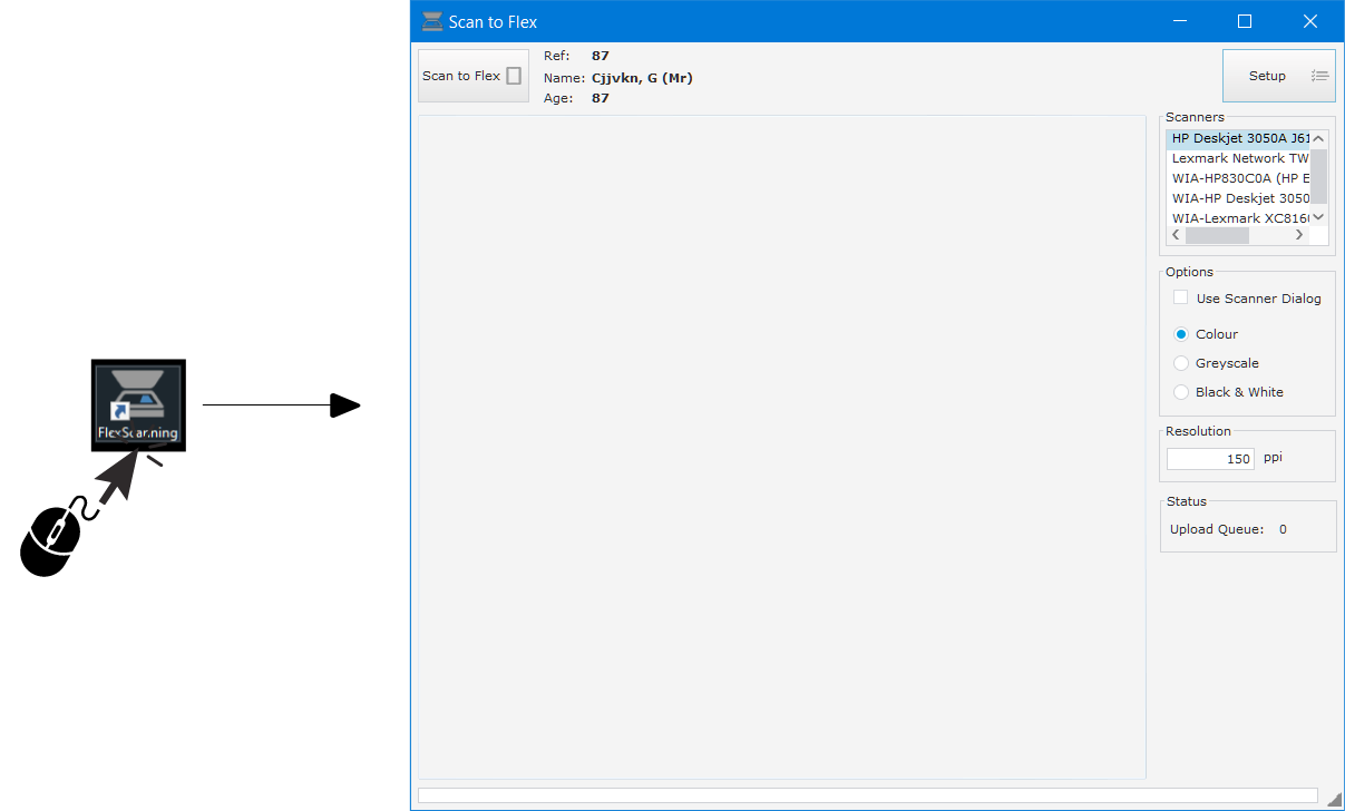 - Your document will be scanned, saved and automatically uploaded / added to the patient record in Hosted FLEX