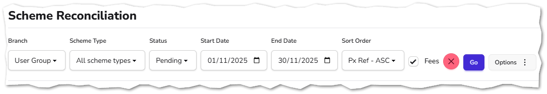 | 5821 | Schemes | The scheme reconciliation screen has been updated to include a 'Go' button, to prevent the results from refreshing every time a field is changes, and an option to hide 'VAT & Fees' speeding the loading of the results table.![]() | ||
