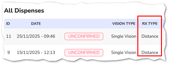 | 5874 | Dispense | 'Rx Type' has been added to the 'All Dispenses' table in the dispense screen.![]() | ||