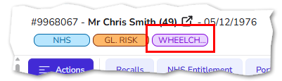 Tags appear at the top of the patient record, in the search window and the appointments page.