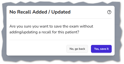 | 4965 | Examinations | A popup warning now appears when an examination record is added/updated without the recall being added/updated.