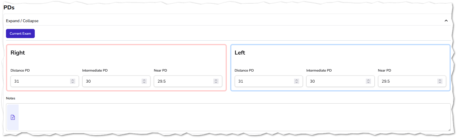 | 5177 | Exams | A new Exam compoment has been added to record PDs in the consulting room. It is also possible to record notes and use the Paragraphs feature.![]() The same 'split' function applies to the PDs in the exam as currently applies to entering PDs in Dispense (a value over 39 will be split in half across both eyes). The entered PDs can also be used as merge fields for populating email or letter templates. When creating a dispense, the PD values are automatically populated using the patient's most recent PD measurements (taken either from the exam or dispense) You can add the component to your exams during an exam, or add it to your exam setup so it can be included by default on a new exam. You can do this in the Settings, by going to Settings -> Exams -> Exam Tabs. ![]() |