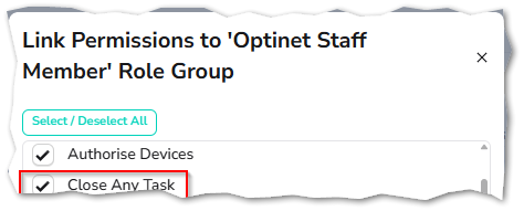 This is useful if you assign a task and would like to allow your staff to close the task once it is complete.