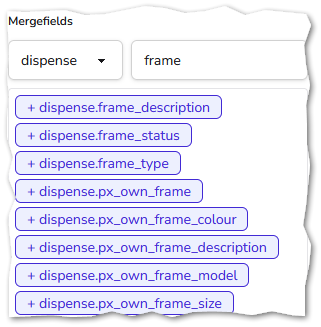 This enables you to futher customise your templates and pre-populate them with fields from your dispense records, including frame details, lens details and measurements.
