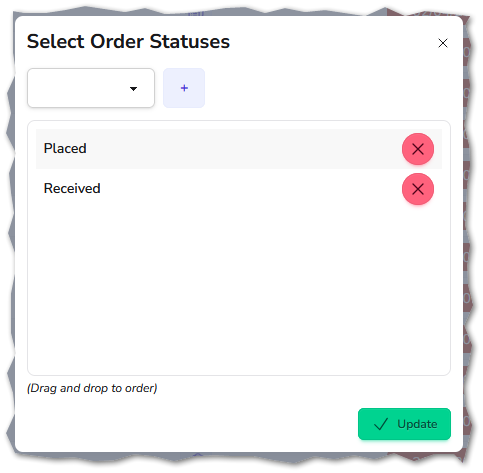| 5762 | Orders | A new 'Quick Status' option has been added to the orders list. This allows you to update multiple orders to the same status in one process. To use this feature, you should select the orders you wish to update, then use the 'Quick Statuses' button. ![]() Select the statuses you wish to be applied to the selected orders - you can choose more than one and select the order in which they are applied. e.g. For our selected 'Auto created' orders, we can choose to update their statuses to 'Placed', and also then 'Received'. ![]() This means it is no longer necessary to open each order to change the status. |