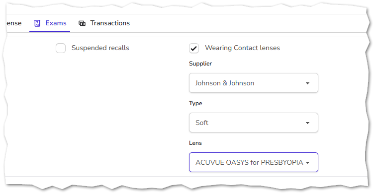 | 5731 | Data Mining | 'Suspended recalls' has been added to the search filters within the 'Exams' tab. Patients will be included if they have at least one suspended recall and they have NOT got the 'Recalls Stopped' flag enabled on their record. Tip: use the 'Recalls' field within the columns to see the recall categories assigned to a patient in the results. Suspended recalls will appear with a line through them. ![]() |