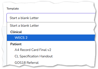 | 6136 | Patient Record | When selecting a template to send or print, from the patient record, there is now a blank Template Group which displays all templates. ![]() |