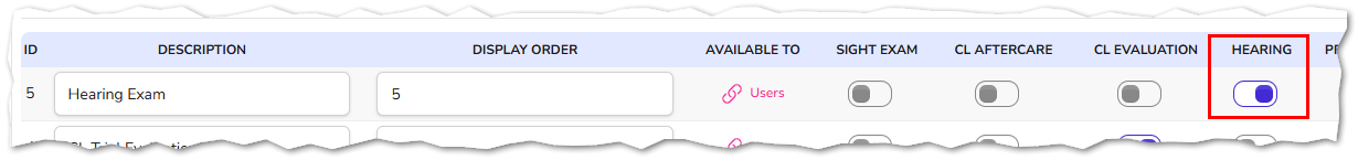 Note: After setting the hearing flag against an exam type, click the save button to trigger a rebuild of the merge-fields. |