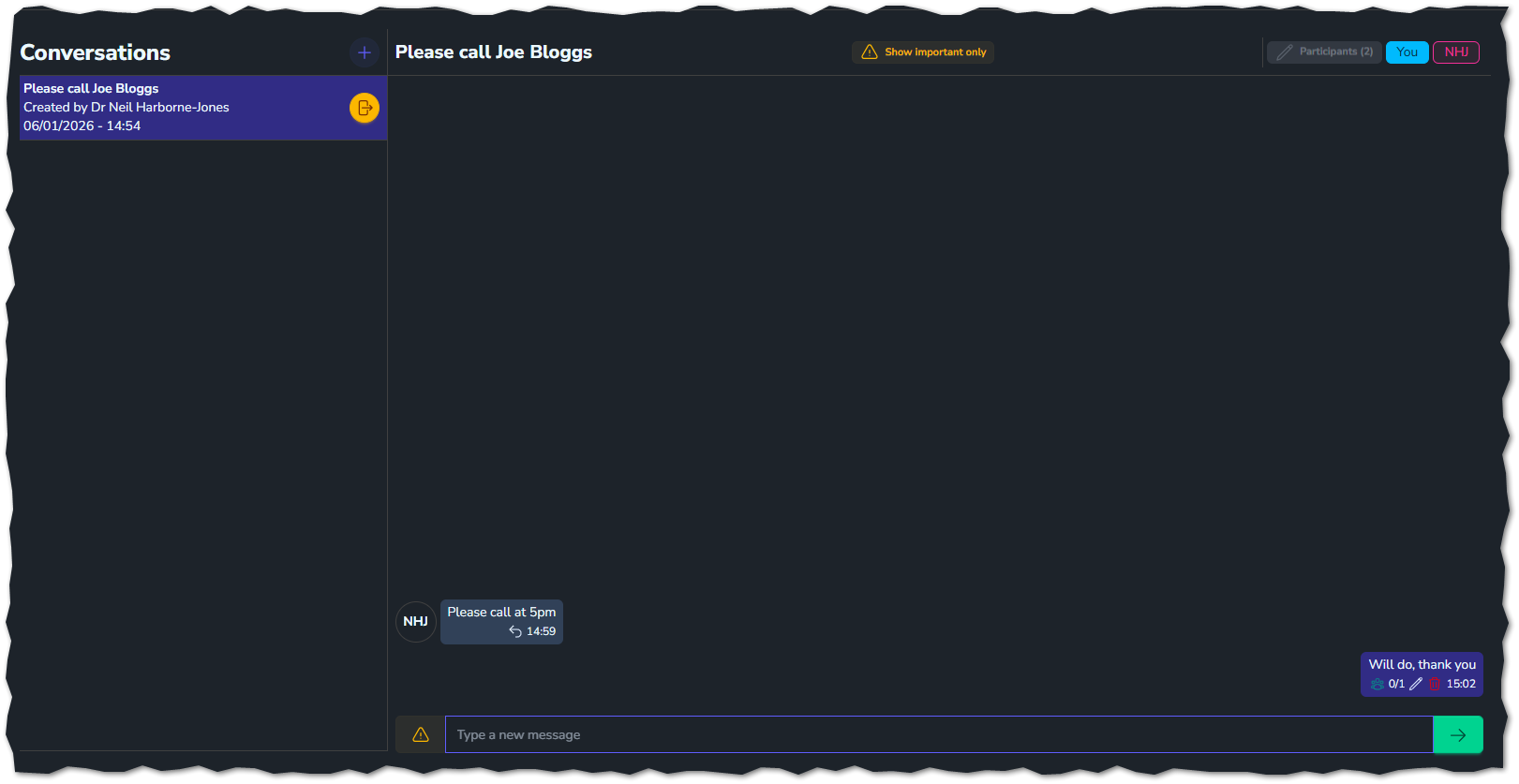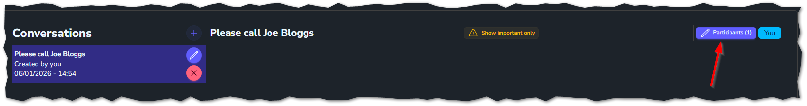 This will create the conversation window. Now, you will need to add participants to the conversation. This can be just between yourself or several staff members.