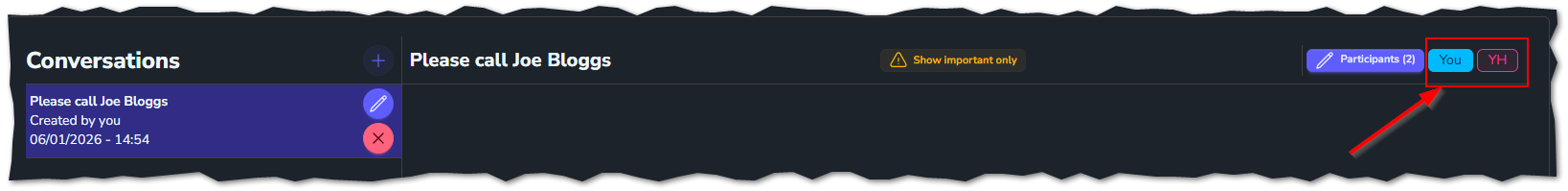 Once you have clicked on here, it will bring up the list of active staff members. Choose as many as needed. You will now see the staff member's initials of who is in this conversation.