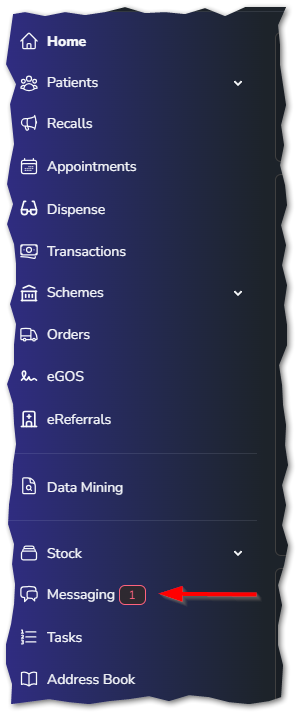You can either access the messages screen from the button at the top of the home screen (as shown above) or by clicking the messaging button along the menu bar on the left of the screen.